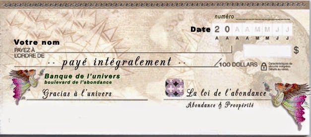 Pour créer plus d’abondance dans nos vies, nous pouvons utiliser une action « magique », les chèques d'abondance qui sont utilisés lors de la nouvelle lune.